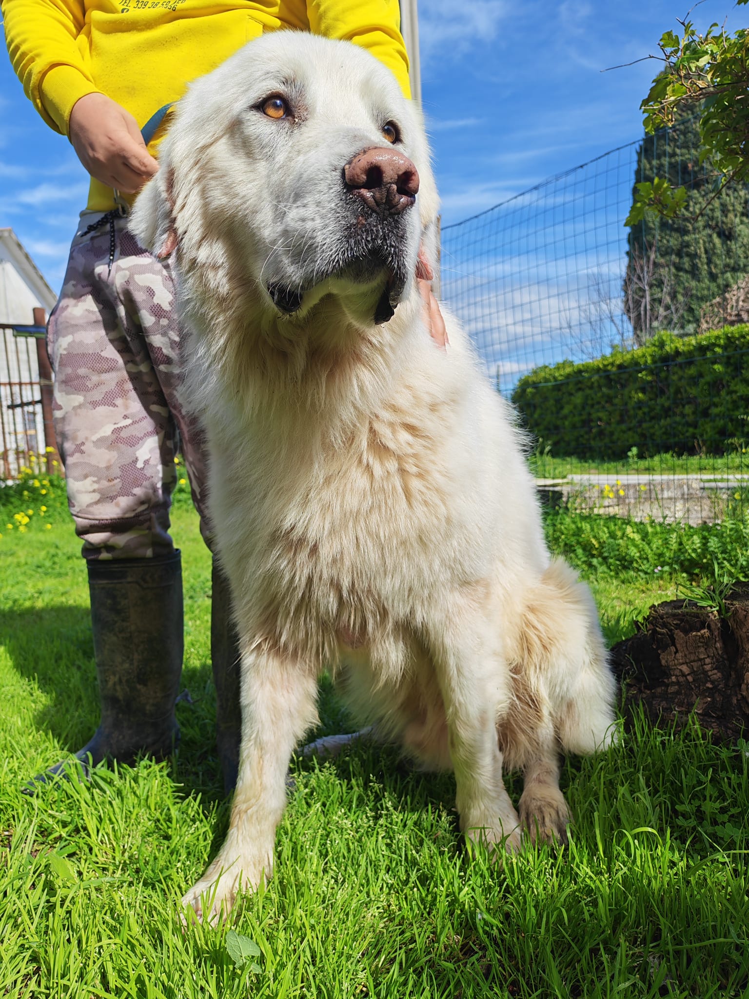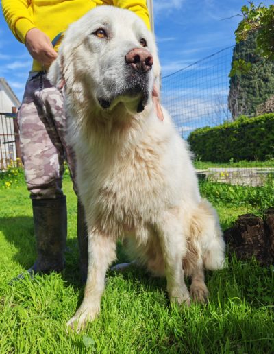 Nebbia est un grand chien au cœur tendre et extrêmement doux. Malgré sa taille impressionnante, c’est un chien très bon, calme et affectueux, qui apprécie la présence humaine et cherche simplement une famille à aimer.